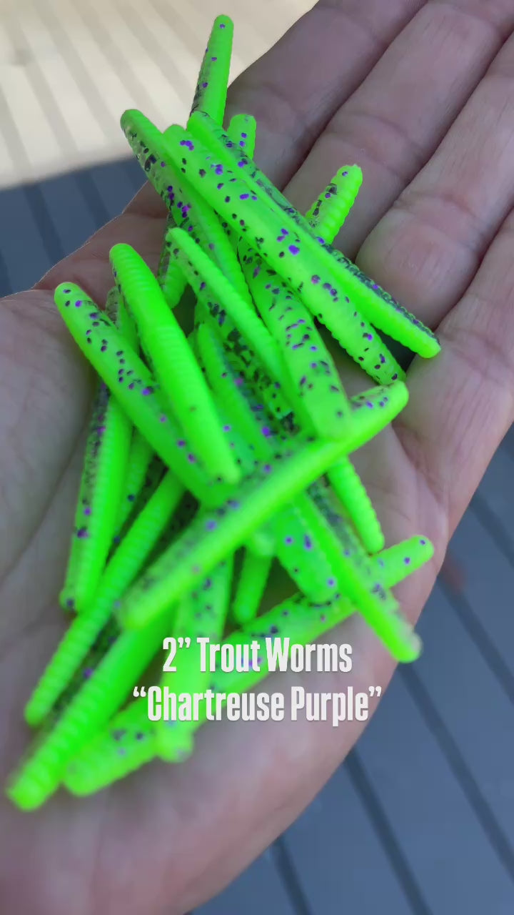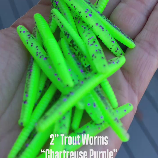 10pc 2.0 “Chartreuse Purple” Trout Worms